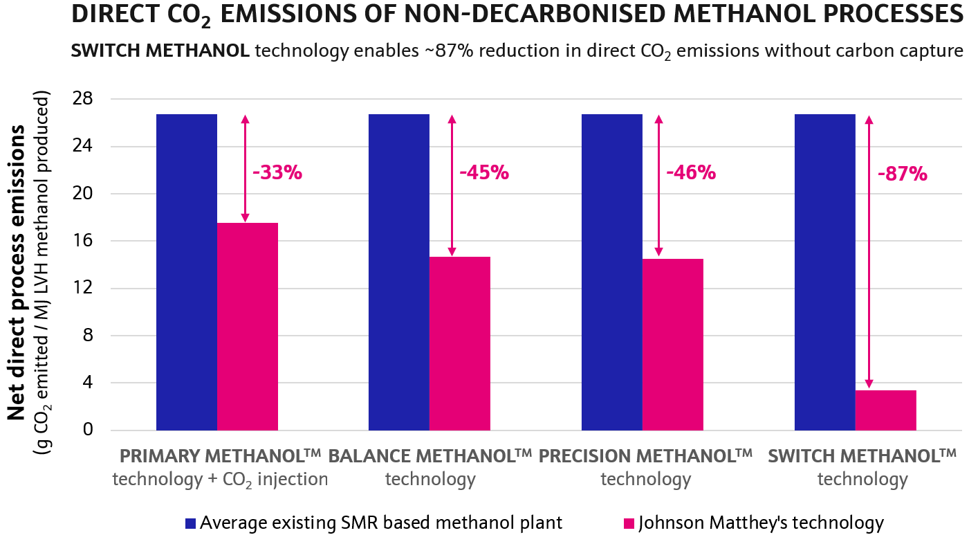 Johnson Matthey’s award-winning SWITCH METHANOL™ process delivers minimal direct CO2 emissions without the additional investment, running costs and complexity of carbon capture. It is ready to receive renewable electricity and it enables methanol producers to meet their sustainability goals as we transition to a low-carbon economy.