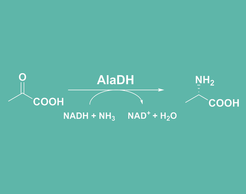 Alanine dehydrogenase (AlaDH enzyme) catalyses the reductive amination of pyruvate to L-alanine. AlaDH enzymes requires NADH cofactor and ammonia to carry out the reaction. NAD+ is regenerated to NADH by GDH.