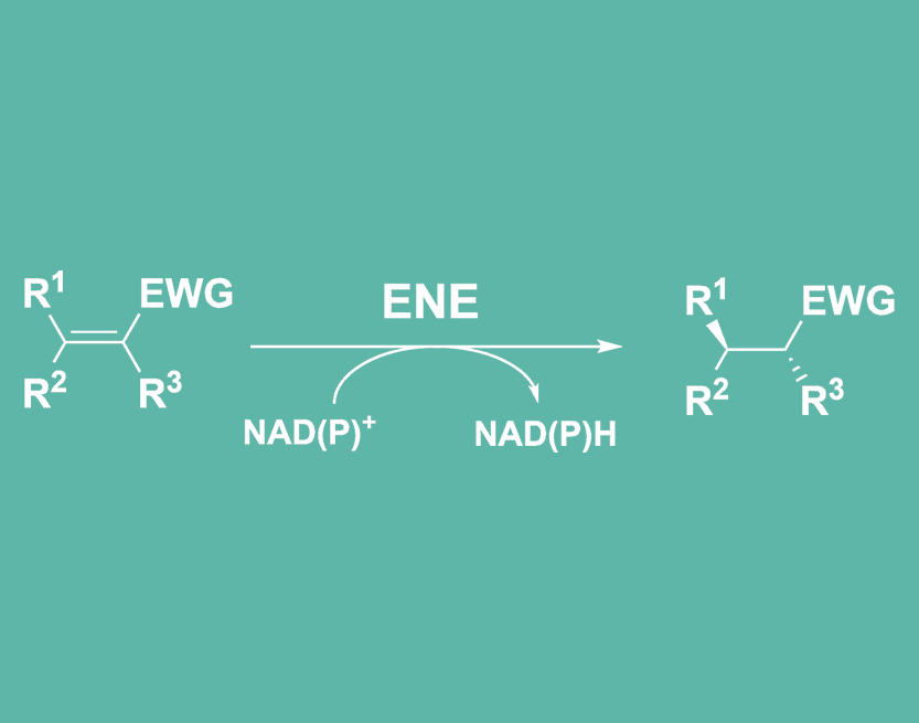 Ene reductase enzyme catalyse the reduction of C=C double bonds in presence of an electron withdrawing group (EWG). Examples of electron withdrawing groups are carbonyls (ketones and aldehydes) and nitro. In some specific instances, carboxylic acids, esters and nitriles can also act as activating groups.