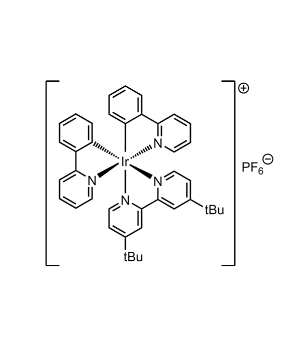 Long Description: (4,4'-Di-t-butyl-2,2'-bipyridine)bis[2-(2-pyridinyl-N)phenyl-C]iridium(III) hexafluorophosphate