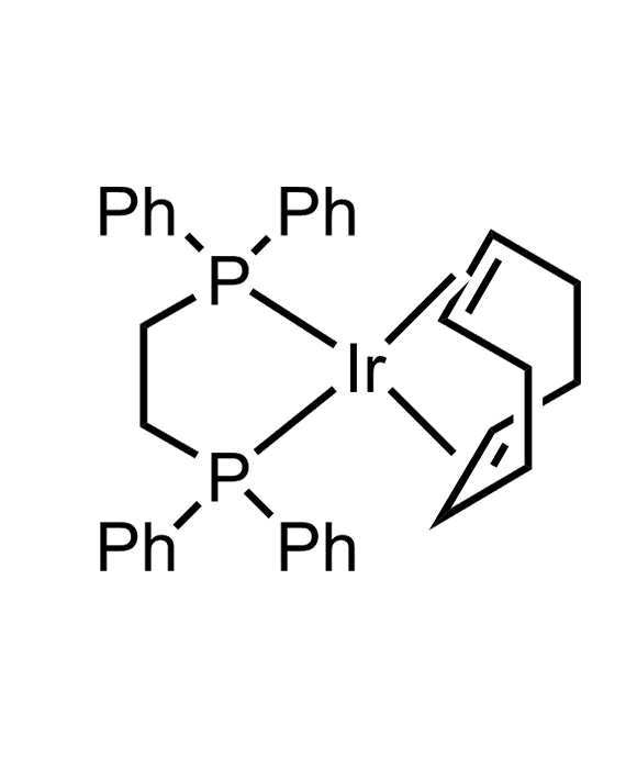 Long Description: chloro[1,2-bis(diphenylphosphino)ethane](1,5-cyclooctadiene) iridium (I)