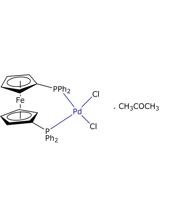 Long Description: dichloro [1,1-bis(diphenylphosphino) ferrocene] palladium(II) acetone adduct