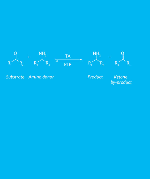 TAs require a PLP cofactor for catalysing the reaction. PLP binds in the active site of the transaminase and it is instrumental for catalysing the transfer of the amine from an amino donor to the substrate, hence forming the desired chiral amine.