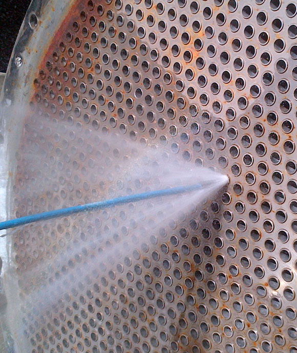 This is an efficient and cost effective method for removing a pgm bearing oxide from tube side components. It uses demineralised water between 5,000-20,000psi (1,000-1,400bar) through specifically designed flexible lances and jet nozzles.