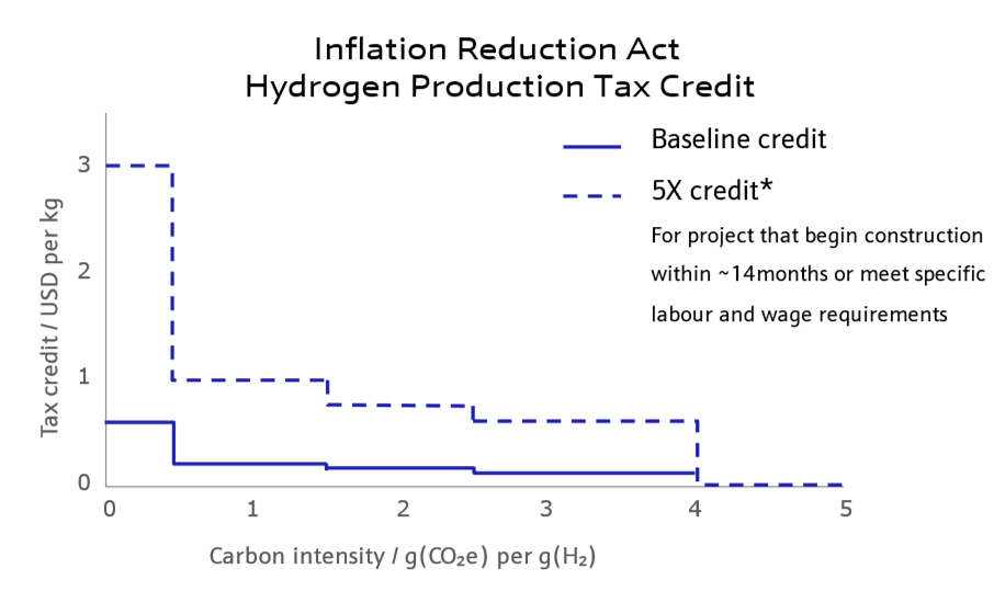 The US Clean Hydrogen Production Tax Credit (part of the Inflation Reduction Act) is also feedstock-independent. It offers additional flexibility by specifying multiple levels of tax credit for different carbon intensity ranges.