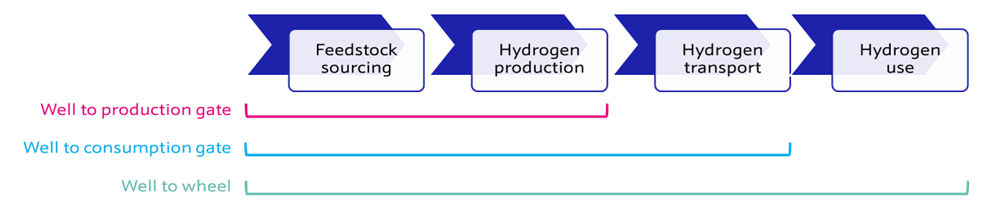 Most hydrogen standards, such as the UK, Japanese and Korean legislation, cover “well to production gate emissions”, from extraction of feedstock to the production of hydrogen. For renewable hydrogen, this includes the carbon emissions associated with upstream electricity generation.