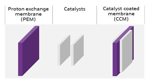 Johnson Matthey (JM) develops and manufactures catalyst coated membranes (CCMs) – the performance-defining components at the heart of renewable hydrogen electrolysers. As the only commercial scale CCM supplier with in-house catalyst and membrane technologies, we can leverage both layers, optimising our components to meet customers targets on performance, durability and cost.