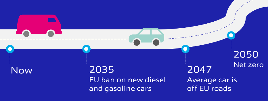 Despite incoming de facto bans on new diesel and gasoline vehicles, used vehicles will still be on our roads for years to come. In fact, in the EU, cars stay on the road for 12 years on average and it’s almost 14 years for trucks.2 Plus, these vehicles often see a ‘second life’ when sold on to other regions. We need legislation to bridge the gap as we transition to zero emission transport.